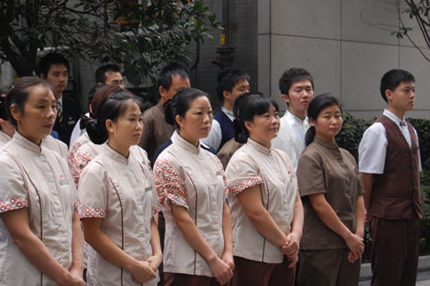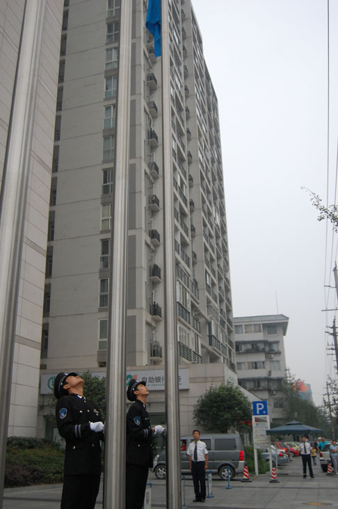 2009年10月1日——我们伟大的祖国成立60周年之际,润邦国际酒店组织当天所有值班员工隆重举行升国旗仪式。员工精神抖擞,有序地排成队列。伴随威严的国歌,国旗缓缓的升起。此时我们不禁感叹六十年的沧桑巨变,六十年的光辉历程!10月3日,正值中秋佳节,酒店为住店客人安排了中秋赏月会,客人对酒店表示感谢,并称赞酒店的服务很周到!