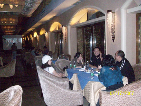 住店客人在蓝彩虹咖啡参加中秋赏月会(时间应为2009年10月3日)