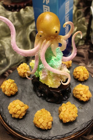 2013年9月24日由舟山市海洋与渔业局、舟山市商务局、舟山市远洋渔业协会、舟山渔业互保协会舟山办事处、四川省饭店与餐饮娱乐行业协会、成都市美食之都促进会联合举办 的“成都.第二届舟山深海鱿鱼美食节首届舟山深海鱿鱼创新菜品及宴席展评活动” 润邦国际酒店参加了本次大赛,在本次大赛中,和同行积极交流,学到了不少东西,增长了不少见识,也锻炼了自己,在本次比赛中,润邦国际酒店还获得一系列奖项: 最佳宴席奖 最具市场推广价值奖:富贵黄金球 最佳制作奖:金汤鲍鱼须