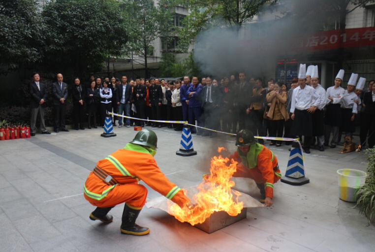 下午14点,随着酒店综合服务中心员工接到楼层服务员发现疑似火情的通知,演习正式拉开帷幕。从安保人员对火情的确认;第一、第二灭火力量的组织和扑救;客房现场人员疏散的程序;员工如何在火场中自我的保护;以及火情得到处置后快速消除对客人的影响,都取得了预定的效果。随后安全管理部张经理向全体员工讲解了灭火器材的使用及注意事项,并现场示范。演练结束后,酒店总经理黄飚先生对此次演练进行了总结性发言。并提出,从2008年以来,酒店在119期间每年都模拟不同场景的消防演练,各部门在平时工作中也要加强员工的安全教育和培训,做好火灾的预防工作。在日常经营中,润邦国际酒店仍将把安全工作放在首位,时刻不忘宾客及员工的安全,努力做到“关心他人,关爱自己,一切事故可以避免”的安全原则,为酒店经营营造良好的氛围。