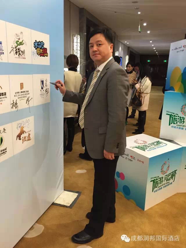 酒店总经理黄飚先生亲临现场参加了颁奖典礼。润邦国际酒店自2014年4月启动客房微信营销计划以来,现粉丝数量已达到2211位并持续增长。同时,酒店“金润鲜卤”微信营销与网店开启陆续推出并实现。