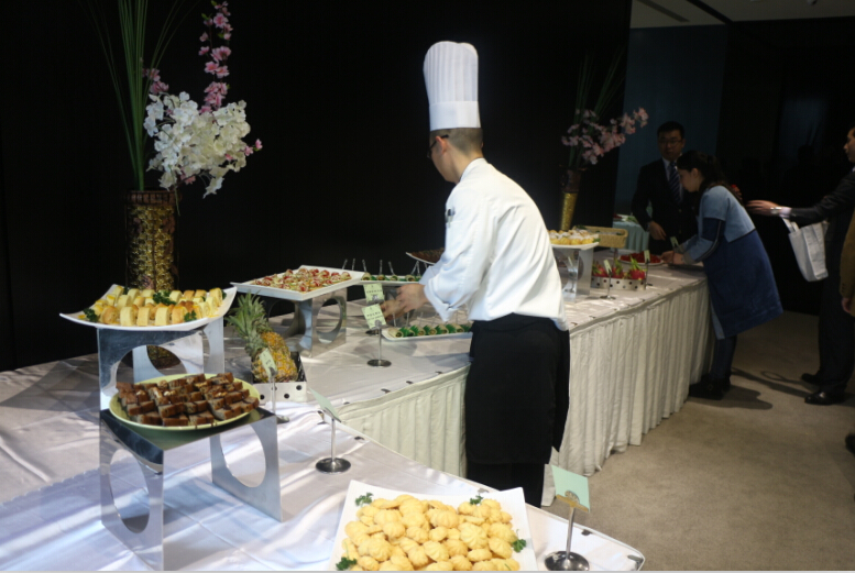 当天一早,餐饮服务部在张家铭经理的指挥下启动两辆运输车开始大到食品展台,小到垃圾筒的搬运工作。而西厨陈波厨师长则负责把关外卖所需的糕点、水果、饮料等食品原料。本次外卖物资准备共26项,现场服务人员共7人。为了让客人享用到最新鲜的食材并及时做好食品补充,我们的西餐厨师们更是将厨房搬到了现场精心制作。此次外卖工作从早上9:00开始至晚上19:00才结束。而我们周到细致的服务也受到了在场所有客人的肯定。