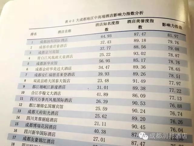 2016年7月27至28日,由四川省旅游发展委员会主办,四川省旅游饭店行业协会承办的“2016年全省旅游饭店持续发展暨省级星评员培训会”在成都加州花园酒店举行。会议总结了我省旅游饭店提质增效创新发展取得的成效,分析了当前饭店业面临的机遇与挑战,提出了我省饭店业要坚持标准引领、弘扬企业文化、实现持续发展。 会上,省旅游发展委发布了“2015年四川省旅游饭店行业发展研究报告”、“2016年四川省酒店业品牌力指数分析报告”和“2016年上半年四川省酒店网络口碑分析报告”。该报告的研究样本是2016年上半年度来自国内外18大主流点评网站的有关19069家四川省酒店的731253条点评。网站主要包括携程等OTA、去哪儿等搜索网站及大众点评等点评网站几大类。 根据2016年上半年《四川省酒店业网络口碑分析报告》、《四川省酒店业品牌力分析报告》中对大成都地区中61家高端酒店样本影响力指数的研究与分析,成都润邦国际酒店荣居酒店知名度指数(64.93分)、影响力指数(81.97分)榜首,酒店美誉度指数得分87.47。整体来说,大成都地区的中高端酒店的影响力指数表现相对集中且良好,影响力指数在75分以上的有21家酒店之多,在70分以上的则有35家,其表现甚至优于许多大成都地区的豪华/精品奢华和高端酒店。 酒店品牌力指数(Hotel Brand Index,HBI)是测度某一酒店品牌在一段时期内知名度和美誉度的综合指标。其中,品牌知名度主要是指被测量品牌在各类媒体上以各种形式被宣传及被大众关注的程度。美誉度的计算则是借助慧评网的专业技术,将顾客在网络点评中对品牌的满意度、忠诚度以及性价比的感受进行打分。