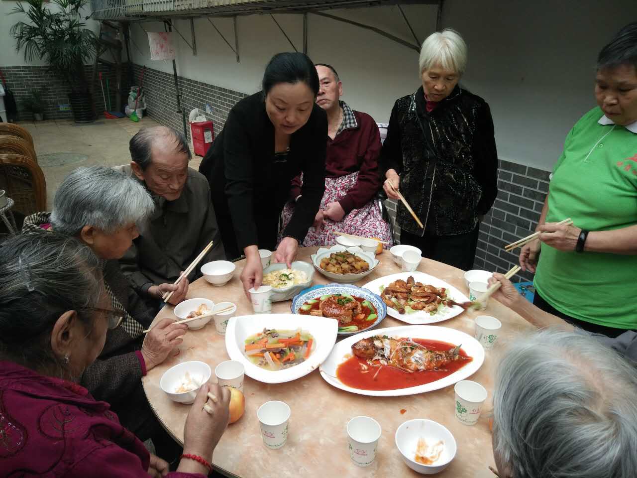 2016年10月9日中午11:20,为了让酒店所在社区----“锦城社区敬老院”的老人们能度过一个愉快的重阳节,润邦国际酒店服务团队在副总经理吴荻女士的带领下,为“敬老院”的老人们带去了我们提前制作好的营养膳食。现场装盘后,我们的服务团队热情地为老人们端上了热腾腾的饭菜。 “真好吃”“好丰盛”“大酒店的饭菜就是不一样”,听着老人们欢快地边吃边赞,我们由衷地感到高兴。 在国庆节前,酒店行政人事部工作人员就提前到敬老院让老人们点出自己最想吃的菜,并承诺:只要老人们想吃什么,我们都尽心尽力去做,一定满足老人们的愿望。 这些老人家的子女们大多因工作繁忙不能在“重阳节”这天陪伴老人左右,个别老人因为身体原因不能自理。我们的团队在膳食准备充分后,都选择了陪老人们聊天解闷,在欢声笑语中结束了今日的午餐。老人们都表示非常感激润邦国际酒店的关爱和丰盛的菜肴。 “老吾老以及人之老”是中华民族的传统美德,润邦国际酒店在此承诺:会将这项“走进社区、关爱老人”的行动继续坚持下去。同时,在此呼吁作为子女的我们:在繁忙的工作之余,切记为家里的老人们多带去一些陪伴与关怀,让他们能有一个老有所乐的晚年生活。