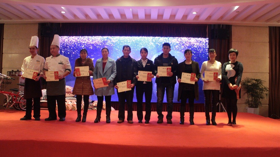 2017年1月24日下午17:00,润邦国际酒店2017新春团年晚宴在五楼蓝彩虹咖啡正式开始,晚宴分为三个流程。 首先,由润邦国际酒店总经理黄飚先生致词。黄总表示:虽然2016我们受到了大环境影响,但我们仍凭自己的努力完成了目标,任务,员工最关心的工资及年终奖问题肯定会比其它行业充实。2017的写字楼改造、新项目的启动,更会让润邦越来越好,让员工及企业的发展方向越来越广阔。 接着,对2016年来在酒店任劳任怨,尽职尽责,勤奋忙碌却又一丝不苟的优秀员工、优秀管理人员及优秀部门进行了表彰。 表彰结束后,2017新春团年晚宴在酒店管理人员的“满天飞”红包中正式开始。晚宴期间,几位高层的微信红包、连续五轮的大抽奖及摇一摇微信红包,将整个晚宴气氛推向高潮,酒店经理级以上的管理人员也穿上了独家定制的唐装为大家进行餐中服务。 艰难的2016我们用汗水与艰辛留下了难忘的篇章,2017是转折性的一年,随着市场的复苏,润邦的明天将会更加灿烂,更加辉煌。 润邦国际酒店2016年度优秀: 一、2016“年度优秀员工”名单: 前厅销售部:李丽、曾妞妞 客房部:田文莲、杨国容、罗锡英 餐饮服务部:王磊、王定宝、曾伟 餐饮部厨房:谢廷江、徐刘备 保洁管事部:陈云兰、徐小容 安全管理部:黄伟、伍小容 工程部:江克银 财务部:王海洋 行政人事部:任风荣 二、2016“年度优秀管理者”名单: 财务部会计主管:李荣芬 客房部主管:张娟 行政人事部员工食堂主管:李保卫 安全管理部经理:张锦言 三、2016“年度优秀部门”:保洁管事部