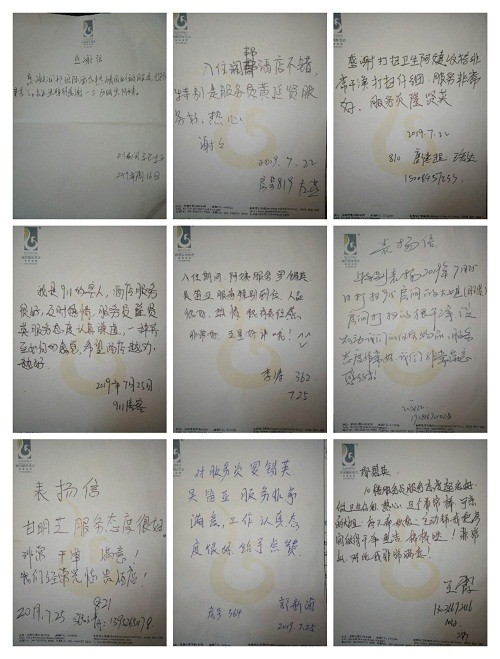 2019年8月,成都润邦国际酒店行政人事部收集到了来自酒店各部门的书面表扬信共计62封,刷新了近11年来月度表扬信的历史新高。 自2018年出台《网络点评奖惩制度》以来,酒店各部门的表扬信接踵而来,表扬的内容也是丰富多彩。今年8月更是以每日2封的平均量刷新着历史记录,有的对餐饮部员工主动热情的服务意识进行赞扬;有的被客房大姐不管房间如何脏乱,仍耐心打扫的行为所感动;有的对安保人员的认真负责表示感谢;更有对及时解决宾客燃眉之急的前厅同事进行表扬••• 除了表扬信外,网络实名5分好评更是不能少。不管是书面表扬的还是网络5分好评的,酒店均以现金红包的形式对同事们进行了奖励,以此鼓励大家提供更热情周到的服务,争取更多的实名好评,提升宾客满意度。
